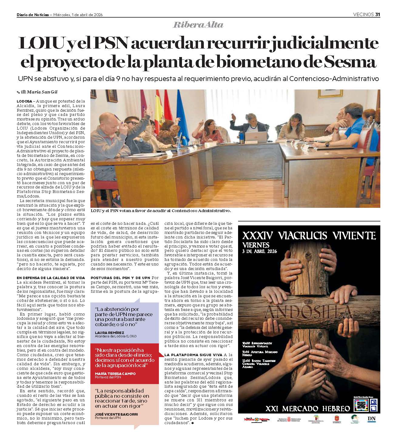El Pleno del Ayuntamiento de Lodosa aprobó, sin el apoyo de UPN, la interposición de un recurso contencioso administrativo contra el desarrollo del proyecto de construcción de una planta de biometano en Sesma que tendría diversas afecciones en Lodosa.